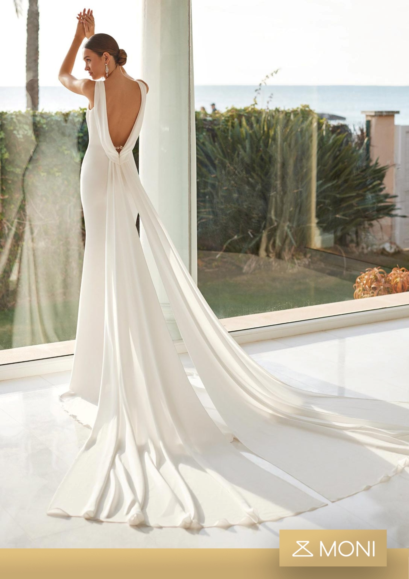 Svadobné šaty Aella s odhaleným chrbtom a priliehavým strihom sú spojením elegancie a nežnosti.